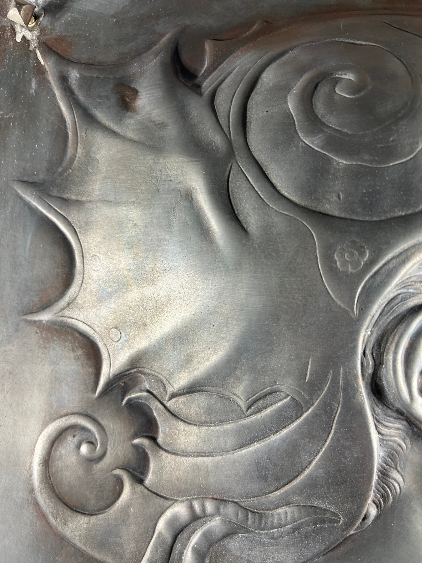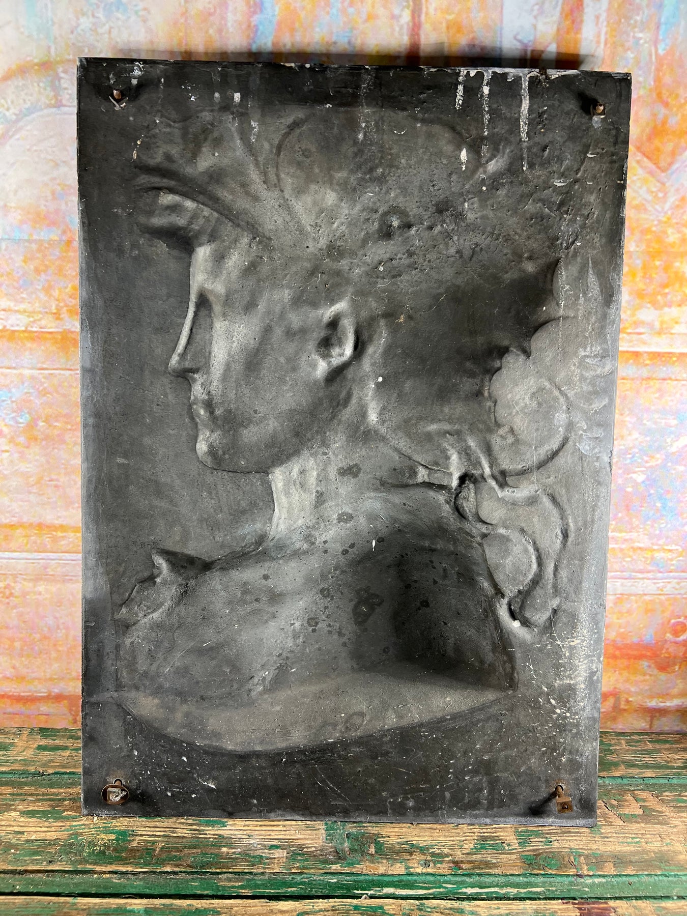 - Matériau : Métal patiné (fer ou zinc repoussé)